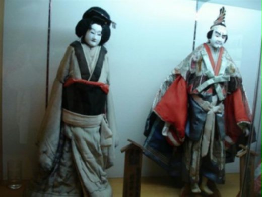 人偶旁邊立了個木牌,上面寫的大概是哪一個名家的名字,但是因為年代久遠,所以臉上的油彩都有點龜裂。雖然都被鎖在玻璃櫃裡,可是看起來還是讓人覺得陰氣森森的。