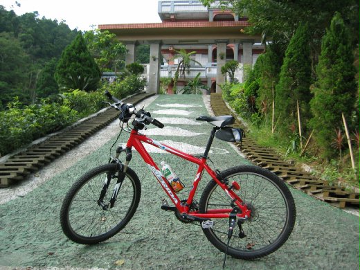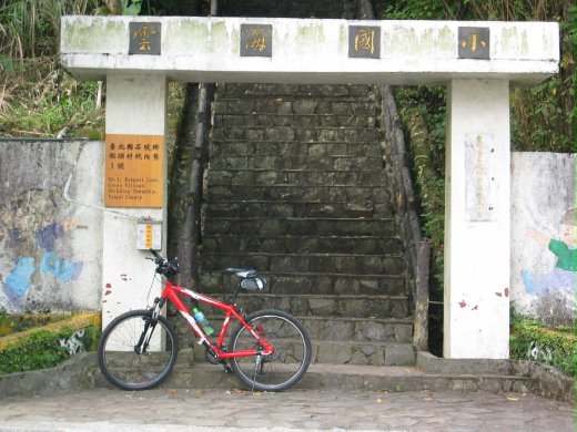 上次在往雲海國小的叉路遇到約 5 , 6 隻不甚友善的狗群且不幸破胎。這次改由路旁的階梯上去。這段古樸石梯似乎久未有人經過,步行而上處處可見到碩大的蜘蛛結網擋道。我想應該不是我長的高才碰到吧!