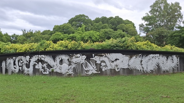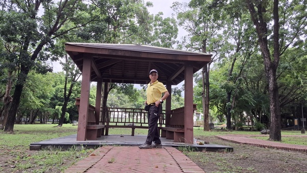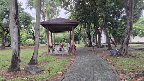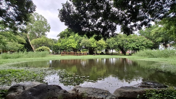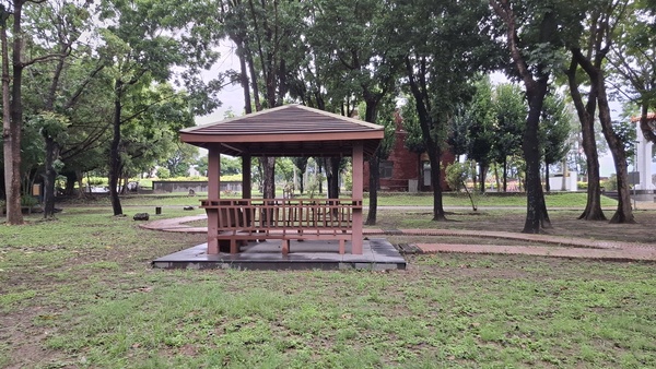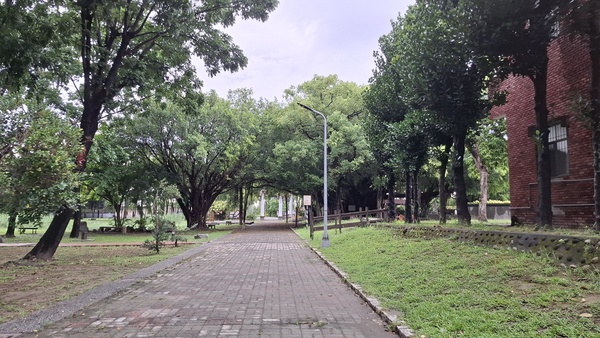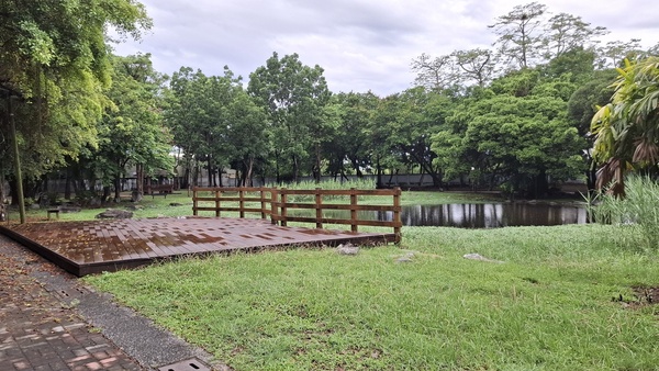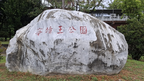 入口處進來的中央步道將園區分為兩邊,左側是庭園造景區,右側是明寧靖王墓。庭園造景區設有林園、水池、涼亭,許多民眾來這散步運動,和一般墓園陰森的印象完全不同。