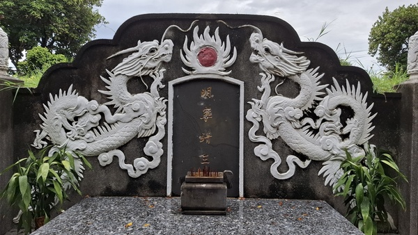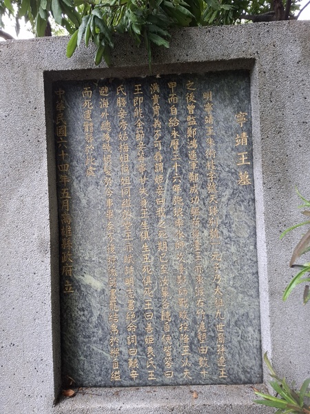墓碑上書有「明寧靖王墓」,並有雙龍搶珠之泥塑。