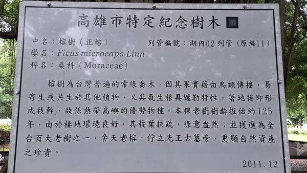 園內的兩棵百年榕樹,已經被高雄市政府列冊保育,老榕樹其氣根蓋天,蔚為奇觀。