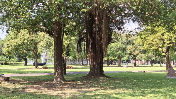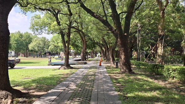 園區內有一條長約100多米的綠色隧道,樟樹和茄冬樹相間的美景,加上特殊氣味的芬多精,讓人忍不住多吸幾口新鮮的空氣。