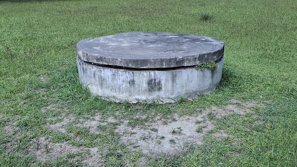 最後找到的古井是在守衛室的左側,有圓形不銹鋼蓋住
