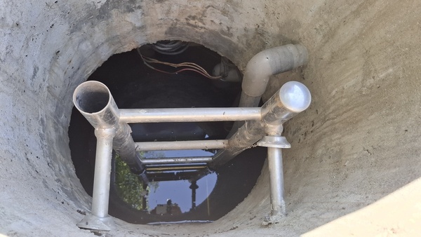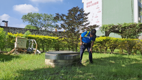 打開後可看到井內有浮球、不銹鋼梯和塑膠硬管。