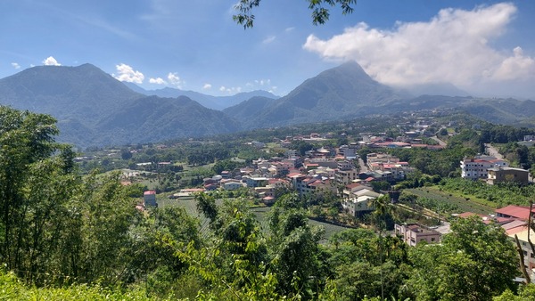 在涼亭上的視野非常好,可飽覽麒麟潭、鳳凰山、樟空倫山等周遭山頭的景致。