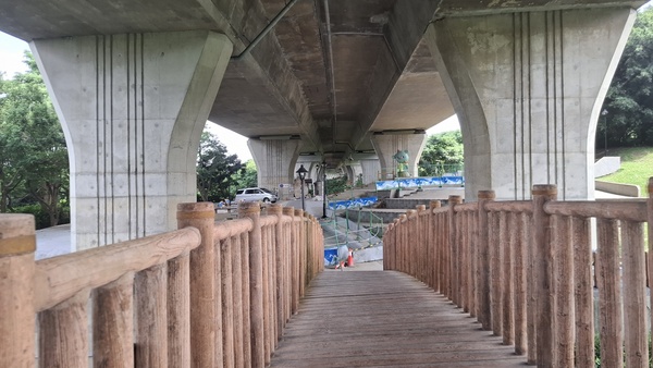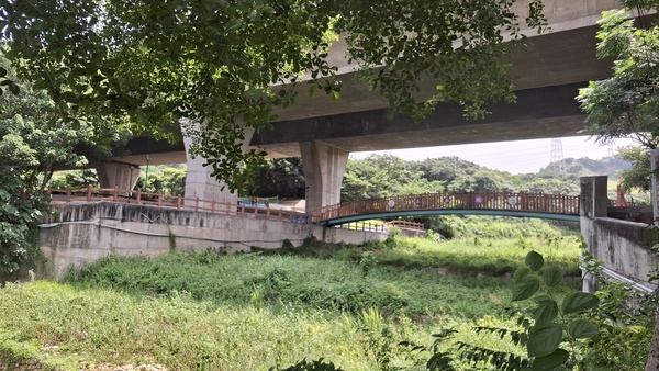 南寮登山古道其一入口就位於中二高橋下,木本橋是健行登山的入口處。