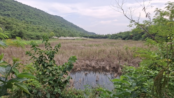 半屏湖的前半湖有水,後半湖都是水生植物。