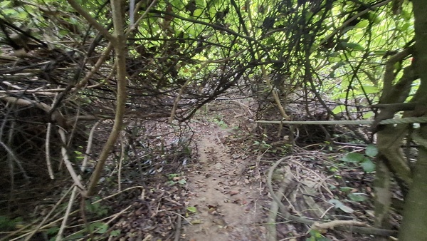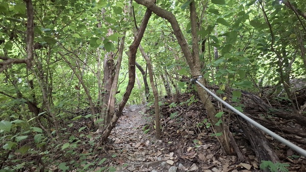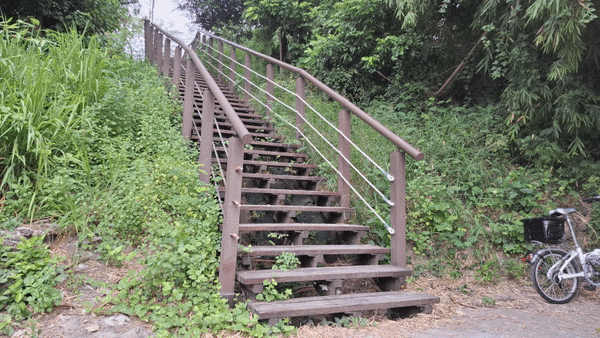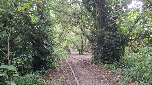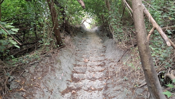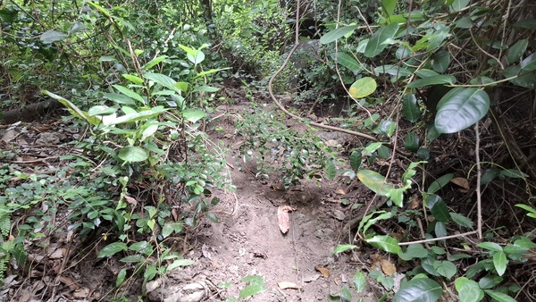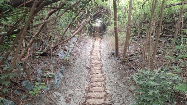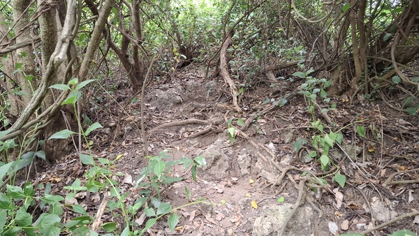 雜木林中有小山徑,我判斷可能可通向半屏山,於是向前走,路途荒涼,很多上坡階梯。