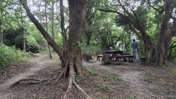 08:35樹蔭下大休息區,有涼亭、有桌椅,很多山友都在此地休息。