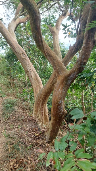 九芎是臺灣鄉土植物,在乾旱貧瘠的土地上也可以欣欣向榮的生長,九芎的樹皮常會剝落,所以樹皮很光滑,因此獲得了「猴不爬」這個生動的別稱。