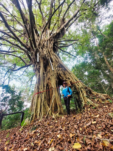 這棵榕樹有很多分叉,看起來很雄偉。