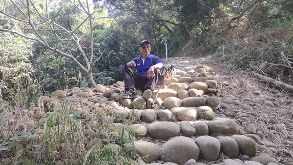 11:33鵝卵石階梯,休息一下再上。