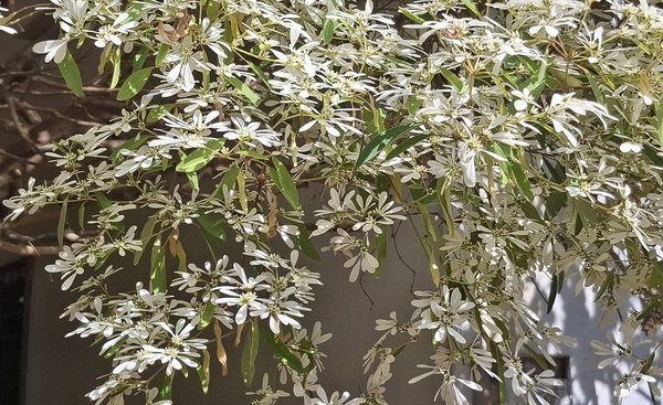 路旁民宅上的白雪木。