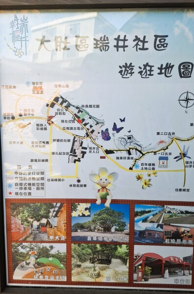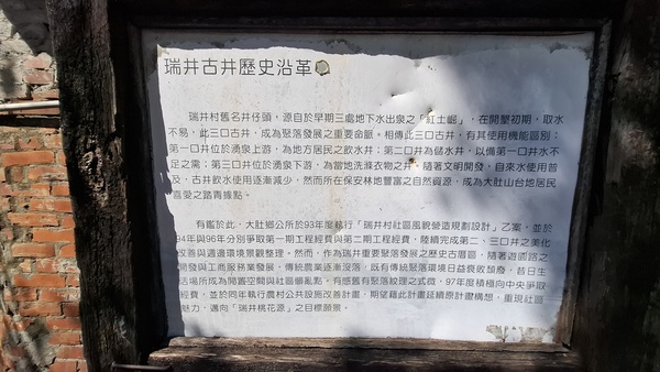 114.12.16早上我從台南火車站坐自強號(07:30)→到達彰化站是(09:09);從彰化轉海線區間車(09:25)→到達大肚車站是(09:38),出站後找到「微笑單車站」,裝上手機架,開啓導航,09:50大肚車站出發,10:14抵達步道「微笑單車站」,因為時間不超過30分鐘,所以租車費是0元,10:22步道入口,入口處叉路,取左行,10:29指標往監理站3000公尺,10:36指標往監理所2000公尺,10:39休息平台,10:47一心站,10:50二萬站,10:55三勇站,10:58五福站,(四季站沒看到),11:01六強站,11:07享壽亭,叉路往監理所1950公尺,鵝卵石階梯向上,11:09大樹下木椅,11:12木棧道階梯,11:29極陡階梯,11:33鵝卵石階梯,11;38指標往長壽亭215公尺,11:45長壽亭,11:53洗手間,11:56接公路,12:00木製指標,往瑞井串連環保公園,12:09經過瑞井國小,12:19瑞井里入口,12:21叉路馭左往瑞井古井,12:26三口古井入口,階梯往下走,12:29辦公室,12:31第一口古井,12:33第二口古井,12:34第三口古井,中午就在古井附近吃中餐,13:06正德宮,廟前有三棵百年緬梔樹,廟旁還有「微笑單車站」,單車從華山路一路只用手很少用腳,13:35大肚車站(騎車費用也是0元),大肚(坐14:05)→到彰化(14:23);再從彰化車站坐(14:36)→回到台南是(16:21)。