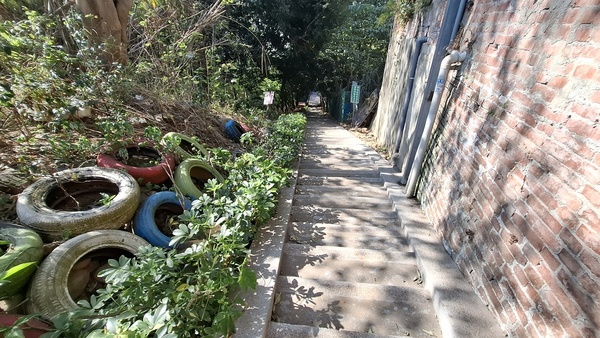 ,叉路往監理所1950公尺,鵝卵石階梯向上。