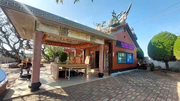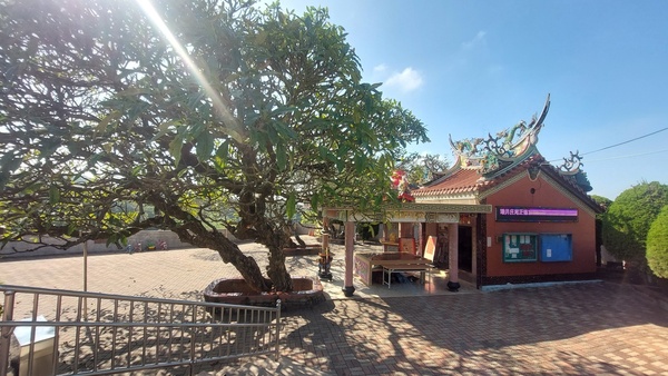廟前的百年緬梔樹,廟旁還有「微笑單車站」,真的很方便。