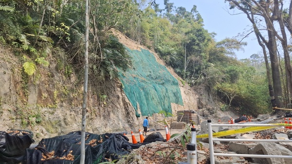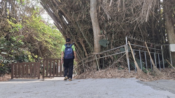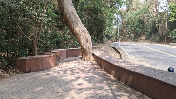 在木板椅上休息一段時間後走環潭公路回鎮德宮,10:29經過筍寮山登山口。