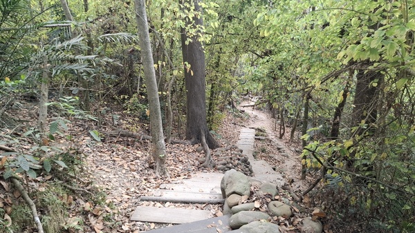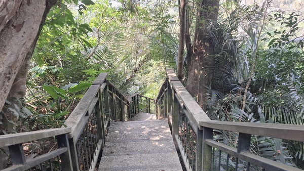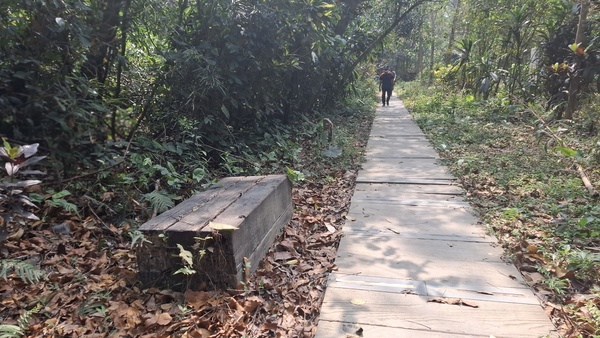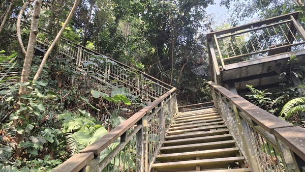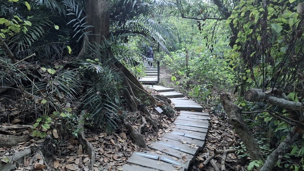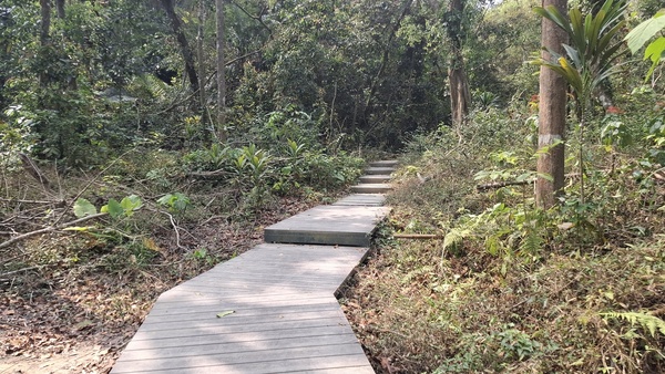 木棧道鋪得很平整,兩旁樹蔭也很足夠。