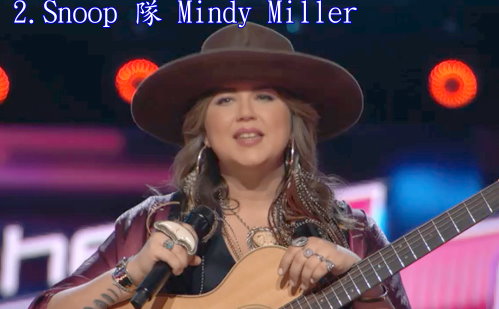 2. Snoop 隊 Mindy Miller – Wildflowers and Wild Horses,她來自馬利蘭州,現居住在納許維爾,滿滿的鄉村腔,聲音豪邁,Snoop 按鈕並【block】Reba,她是 Snoop 隊。