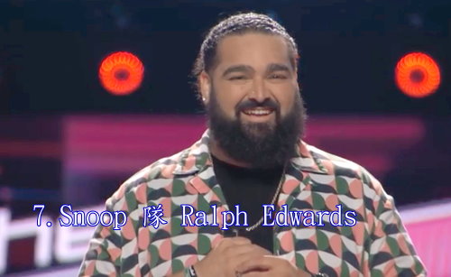 7. * Snoop 隊 Ralph Edwards – Lights,30歲,來自加州,他的 key 高,聲音亮雄渾老練,Michael 和 Niall 先按鈕,Reba 其次,Snoop 也轉身,4椅轉身,Ralph 選 Snoop 隊。