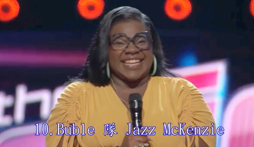 10. * Buble 隊 Jazz McKenzie – What’s Love Got to Do with It,31歲,來自阿拉巴馬州,她的 key不算高,聲音寬帶絲沙啞,Reba 先按鈕並【block】Snoop,Niall 其次,Snoop 也轉身,Michael 最後加入,4椅轉身,她選 Buble 隊。