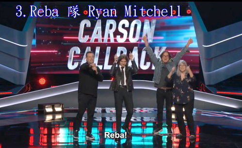 3. Reba 隊 Ryan Mitchell – Carson 回call卡參賽者 – Baby One More Time,25歲,來自洛杉磯,,Reba 按鈕,他是 Reba 隊。