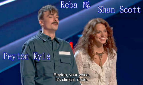 2. Reba 隊 Shan Scott vs Peyton Kyle - Don’t Dream Its Over,Peyton 的 key 高,Shan 的 key 較低比較難發揮,Michael 偏 Peyton,Niall 偏 Shan,Reba 選 Peyton,Shan 打包。