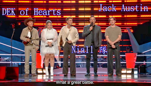 才說著 Battle 對抗賽沒播出 Niall 隊 Dek of Hearts 的表演,沒想到本週一就播很長一條的尾巴了,評審中只有 Michael 還有一個搶人員額。