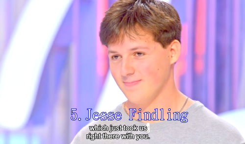 5. Jesse Findling - In the Stars,19歲,來自紐約,他從小就有明顯的口吃,他唱歌時不會口吃,他的 key 較高,雖然緊張,音質不錯很有穿透力,很感性,Carrie 稱讚他的聲音很美,拿到金色通行證。*** 進入前20