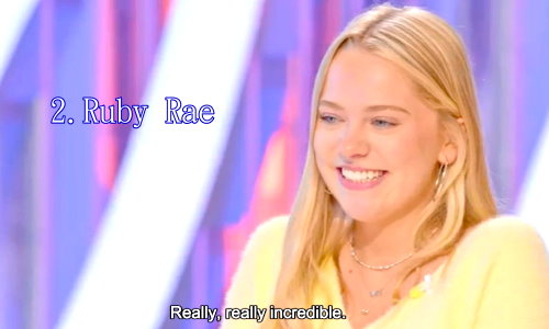 2. Ruby Rae – Vampire,16歲,來自加州,key 高,她的聲音很甜有勁帶著感情,又年輕長得漂亮,她的詮釋完全成了她自己的版,拿到金色通行證。*** 進入前20