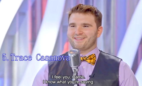 5. Trace Casanova – Wild One (Real Wild Child) & Baby Got Back,他的中音很紮實,一開口 Lionel 和 Luke 都坐不住站起來,他連唱帶做,不過聲音有些太平,他太會耍寶,拿到金色通行證。