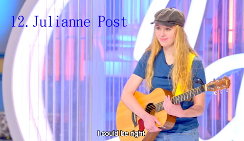 12. Julianne Post – Long Live the Lost Boys (原創),21歲,來自路易斯安那州,她非常緊張,她的聲音帶絲童音,拿到金色通行證。