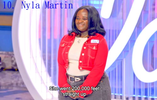 10. Nyla Martin – Ain’t No Way,17歲,來自北卡羅來納州,他的聲音亮,尾韻足,key高,高音仍飆得上去,拿到金色通行證。