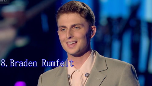 8. Braden Rumfelt – Hard Felt Hallelujah,他是中音,聲音銳尾勁不錯,在比賽中選的曲 key 較低,比較吃虧。