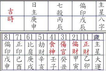 她的前三柱有偏印和七殺,她的感情路也許不會一直那麼悽慘,只不過,她成名在先,愛情,應該說婚姻只好退在一旁,這世界就是這麼的不公平,似乎女人僅能在事業和家庭中選擇一個。(男性也不是什麼都能擁有)以她50歲前的大運和無可限量的歌唱前途來看,事業和愛情不那麼容易兩全。她的歌唱事業越成功,越抓不住她所企盼的愛情。
