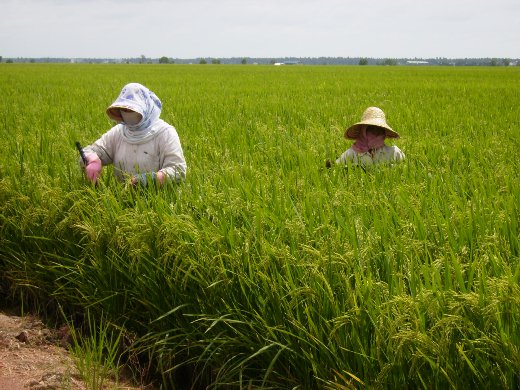“你看,”領路的朋友學的是農科,她伸手摘下幾顆穗粒,抓在手裡了兩指掐住一使力,濃白的稻漿便噴了出來,然後她說:“你也嚐一嚐吧,可香甜得很呢!”