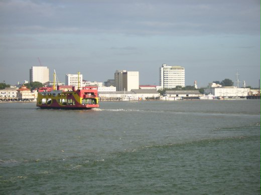 搭渡輪是童年的新鮮節目。渡輪離開渡口之後,海墘街(Weld Quay)上一長列的殖民地老建築,被老渡輪在海面上畫出的尾跡與泡沫漸漸推遠了。渡輪開行之後,小渡海客當然不會安分地坐在位子上,總要從搭客空間的上層蹓到運載交通工具的底層,搶身向前挨著甲板上的閘門,然後踮起腳跟眐望著腳底下的綠色海面翻出的白色浪花;嘩啦嘩啦沸騰翻滾的白浪花,偶爾也會飛濺進來,就想自己也已經飛到船艙外的心情那般。海風隨著船身的移動擠進來,在耳際吹貫得呼嚕呼嚕作響的;頭髮被扯亂得無可收拾了,那就由著它凌亂去吧:原本濁綠色的海水變得澈綠,然後又變濁了之後,北海碼頭的渡口在望,這短程的海上節目,也就接近尾聲了……