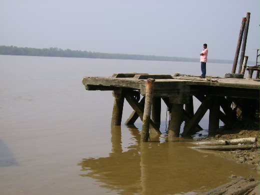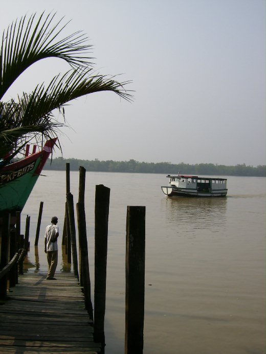 沒有進村,我們只在渡口的周遭閒逛──帶路的人說,即使進得村子,也不認得任何人了。走上渡口,腳底下的橋板一直下傾並延伸到水平面了,才消失在濁黃的河水裡。河岸的泥地裡鑽洞又橫行的,是一隻隻的小蟹──聽說我從檳城下來,猜想對漁村景象很陌生的才是,於是她們趕忙招呼我看。其實啊,在喬治市姓氏橋的吊腳樓底下,也不難見到的,我說。說著說著,無聲無息地就來了一艘船。原先一直在渡頭的末端張目眺望的印度人,原來是等著渡船來泊靠的;他是渡船公司的人,這是我後來才知道的。