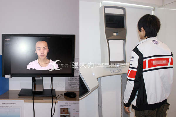 諮詢護理師幫他照攝3D Vectra微擬系統,呈現擬真的立體影像,G先生表示想過割雙眼皮、也想要臉澎一點,看起來較有精神。
