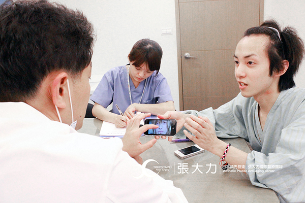 整外專科張大力醫師問診時,詢問G先生的期待值,G先生拿出日本明星山下智久的照片,希望像他一樣,故張醫師割得時候眼距較大、消腫後雙眼皮更深邃與明顯。