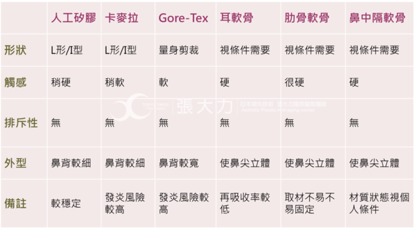 圖說: 常見的隆鼻材料