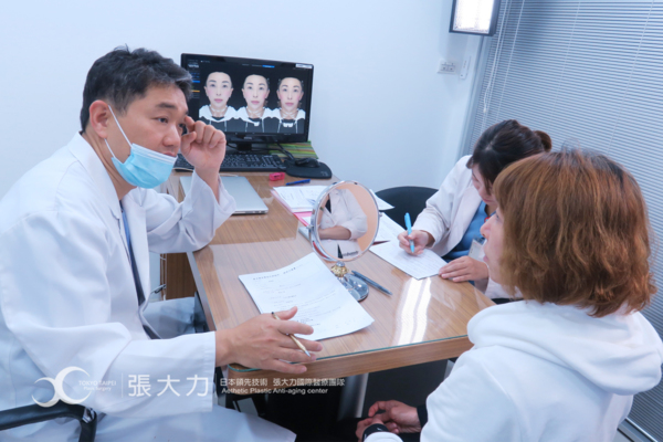診療前W小姐拍攝立體的模擬照片(美國3D Vectra),運用最新科技運算術後的變化,對於臉龐、身體可以做術後模擬,針對個人特質更能呈現術後的變化,找出適合自己的療程。
