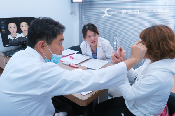 張大力院長讓W小姐看雙眼皮的高度,並要保留有精神的感覺。