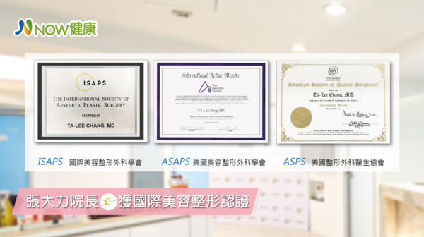 圖說:整形外科留日院長張大力醫師獲美國ASAPS美容外科醫學會證書,同時也擁有ASPS(美國整形外科協會)與ISASP(國際美容整形外科醫學會)兩大國外會員認證。
