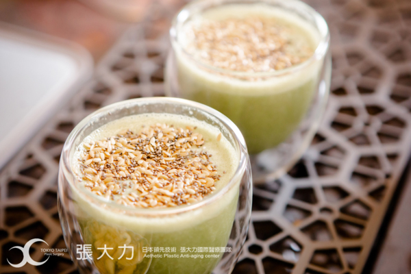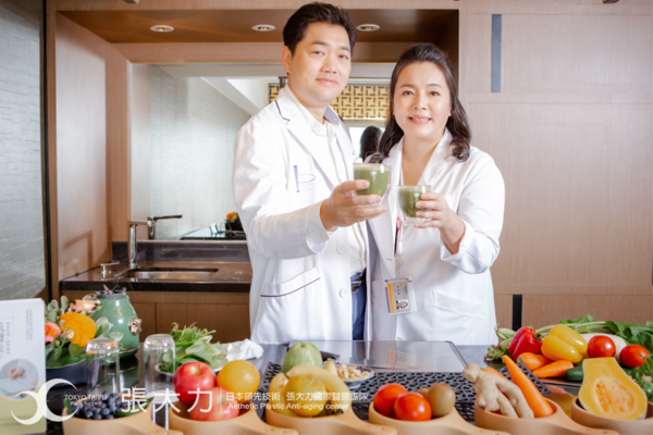 圖說:張大力院長與劉藥師特製『養生綠拿鐵』,