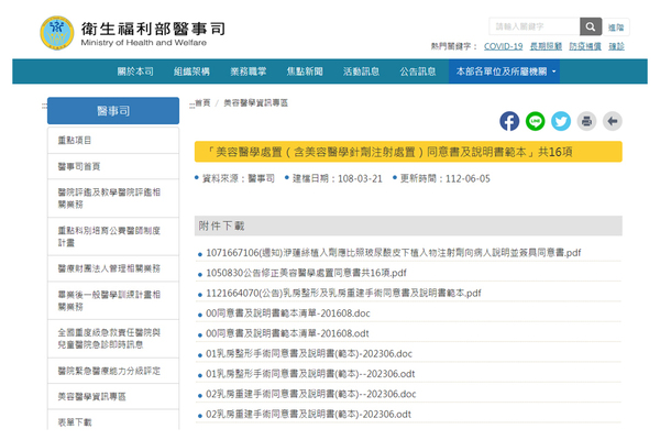 衛福部重視醫療品質,執行公告透過「美容醫學處置」同意書及說明書範本(請點我),增列思考期。醫療本身存有不確定因素,美容醫學屬於醫療行為,同意書說明併發症及後遺症發生機率及處理方法,風險與副作用等,參考國際相關指引與推行現況,導入行動衛教室機制,線上指導實證基礎,術後專業照護衛教及自我了解與照護,發展檢視自身條件與降低發炎感染出血等風險,多元組合式照護措施,線上推廣相關線上工具與雲端資料,在每個階段能建立有效的管理,將預防手術部位感染照護措施納入常規流程,以提升醫療照護品質。在術前、術中、術後的層層安全把關、共同合作管理,目的在於降低術後傷口的疼痛、腫脹,預防發炎、感染等併發症機率,縮短恢復期,改善體內細胞的發炎與不良狀態。個案管理中的繁雜步驟,主要在發炎和免疫力低下等不良因素,醫療行為,每個人的狀態都不一樣,衛福部在同意書傳達的內容公告於衛福部網站,增進民眾於術前完整的了解與判斷。