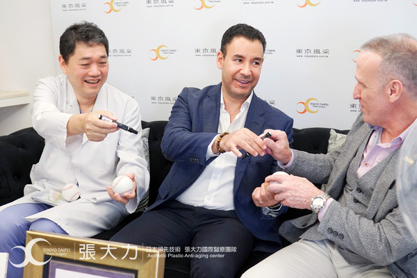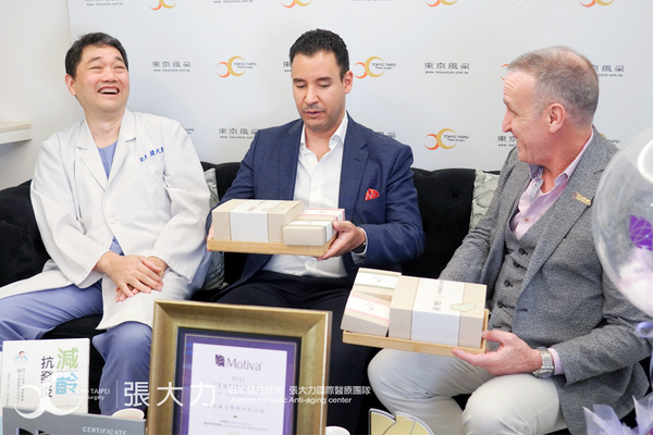 張大力院長從魔滴在台灣上市以來,有豐富的手術經驗,特地致贈台灣在地的坪林茶,優質的茶品能促進健康,並請Motiva亞太區副總裁Mr. John Liljequist與Dr. Jesús Centeno簽名在棒球上,作為紀念。