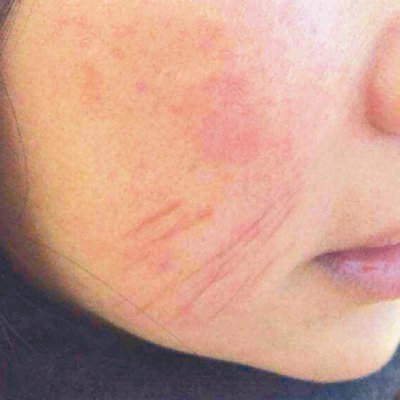 一名四十六歲婦人見到電視購物推銷音波拉皮療程,比坊間便宜八成,購買後到醫美診所治療,臉部卻出現灼傷、起水泡,留下三條像貓抓的痕跡。