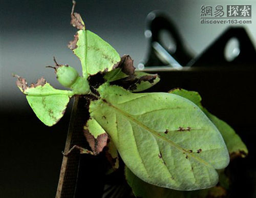 樹葉蟲的學名為葉蟲,叫「Phylliidae」,但人們往 往俗稱它們為樹葉蟲。它們具有驚人的難以想像的擬態和保護色,無論怎麼看它們都像是一片葉子,如此長相足以騙過捕食者。當它們行走時它們會回來搖動身體, 看起來就像是被風吹起的樹葉。更令人不可思議的是,一些葉蟲居然在身體邊緣「偽造」被咬過的咬痕,從而達到更加迷惑敵人的目的。