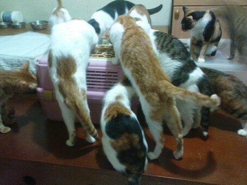 回到家時 好奇的貓小孩們 通通圍上來 好不熱鬧呀